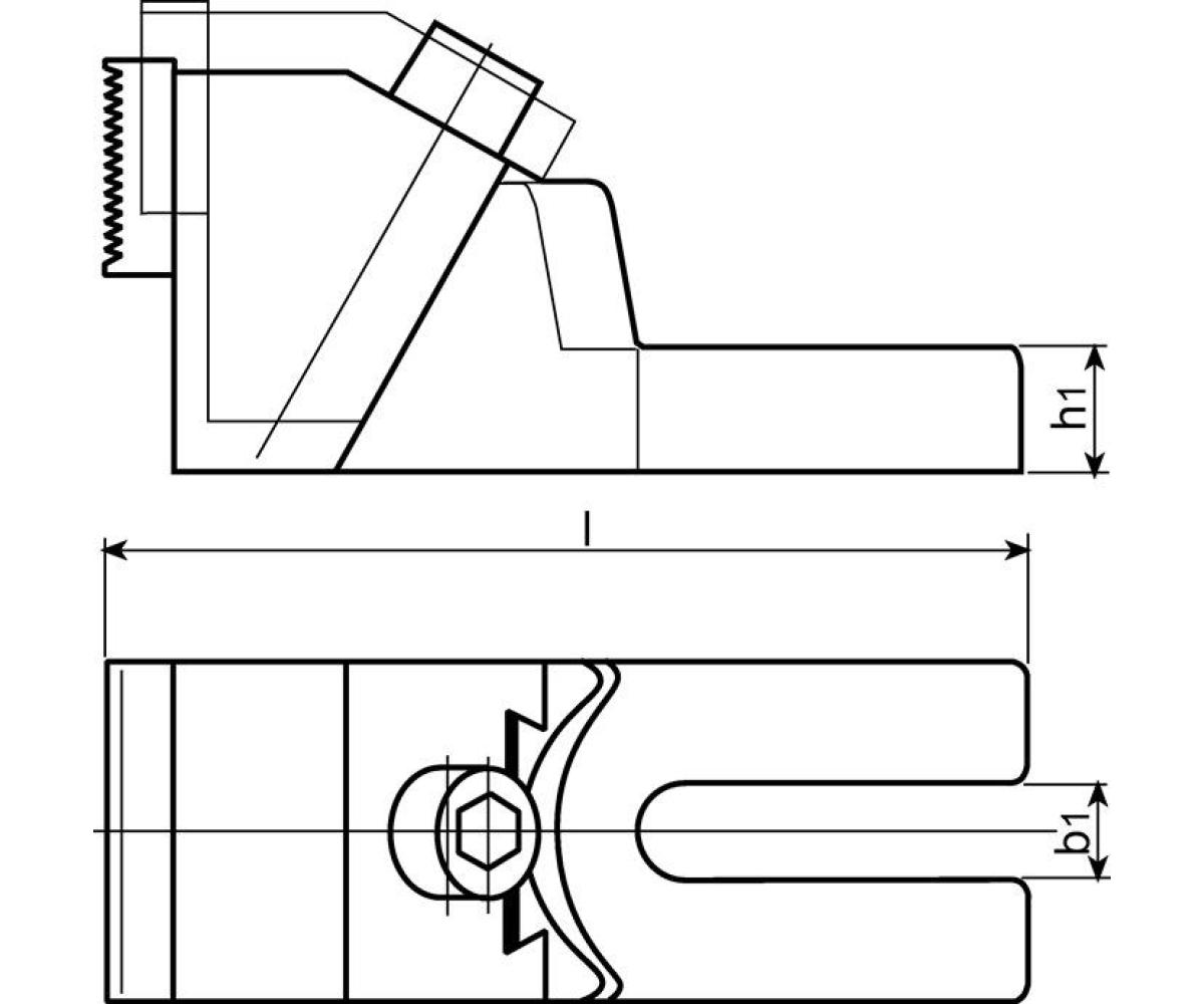 Weitere technische Eigenschaften · H max.: 99mm · b1: 19mm · h1: 38mm · l: 179mm · Stabilspannbacke Nr. 6497 · 12/14/16/18mm AMF · Anwendung: Durch die große Spannfläche eignen sich diese stabilen Spannbacken zum seitlichen Spannen hoher Werkstücke. Zur Befestigung des Stabilspannbackens auf dem Maschinentisch wird die Verwendung von zwei Spannschrauben empfohlen. Als Befestigungsschrauben sind je nach Nutenbreite Schrauben für T-Nuten DIN 787 - zwei Stück je Spannbacken - separat zu bestellen. ·