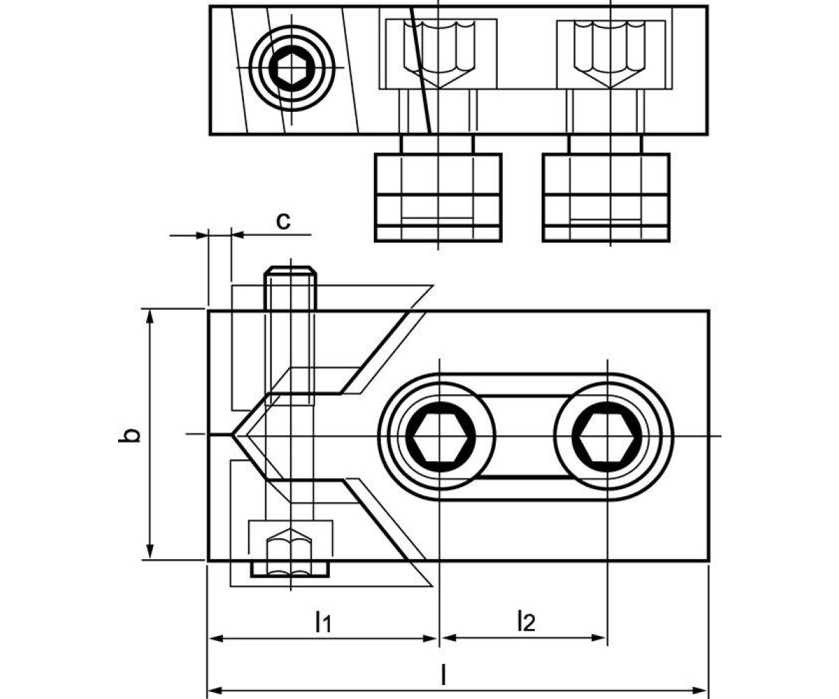 Weitere technische Eigenschaften · b: 40mm · l2: 26mm · l1: 39mm · c: 3mm · l: 80mm · Tiefspannbacke Bulle,Nr. · 6490 16mm M12 AMF · Lieferung mit Befestigungsschrauben ISO 4762 (10.9), Muttern für T-Nuten DIN 508 und Sechskantschraubendreher ISO 2936 ·