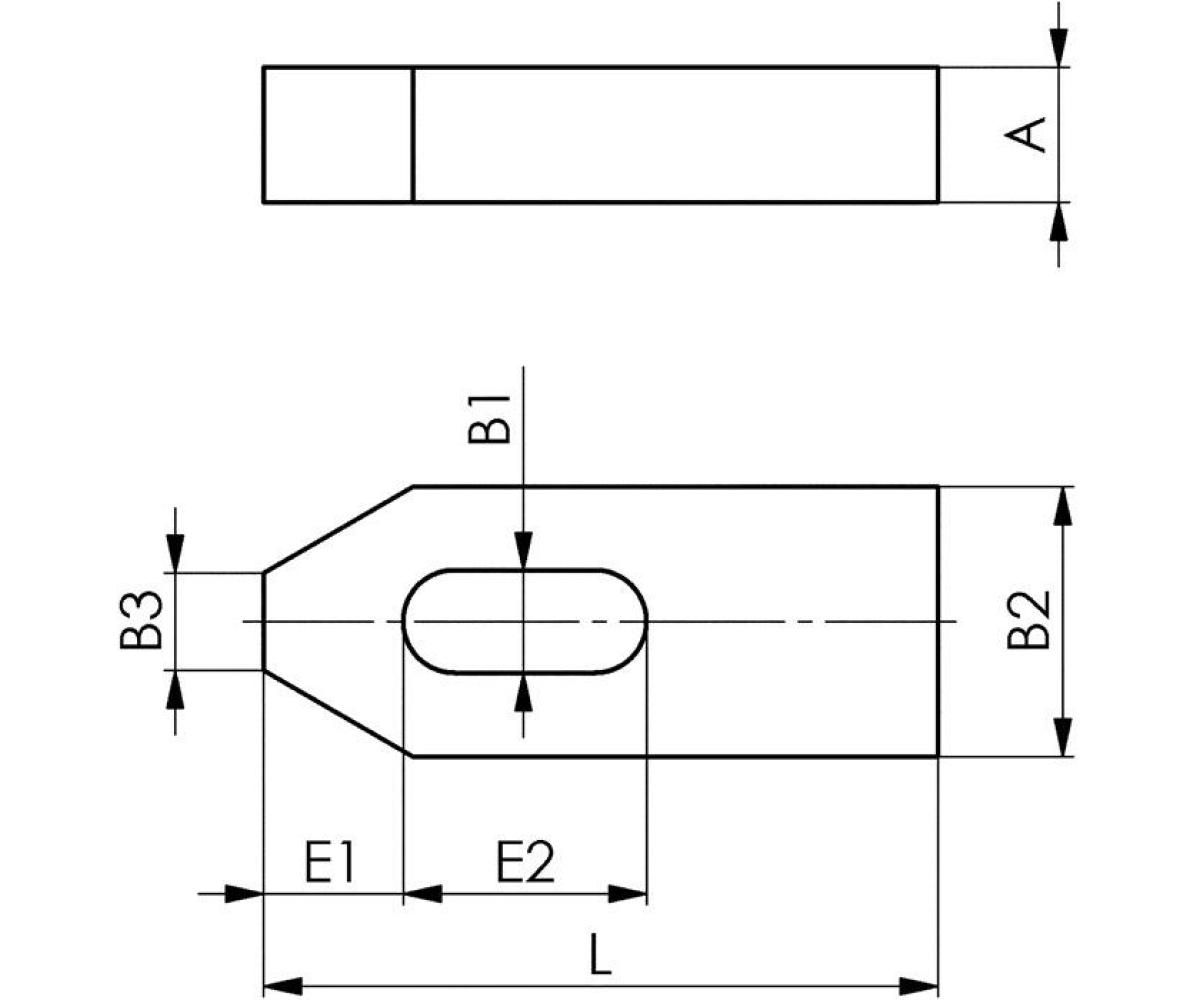 Weitere technische Eigenschaften · Breite: 50 mm · Länge: 160 mm · A: 25mm · B1: 18mm · B2: 50mm · E2: 65mm · E1: 26mm · Gewicht: 1240g · L: 160mm · Stärke: 25 mm · Schlitzbreite: 18 mm · B3: 18mm · Spanneisen DIN 6314 · f.T-Nut 16+18mm L.160mm · AMF ·