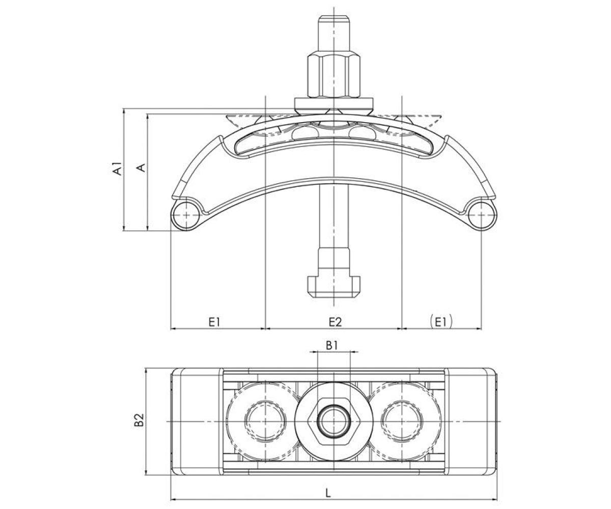 Weitere technische Eigenschaften · Breite: 44 mm · Länge: 80 mm · A: 30,5mm · B1: 11mm · B2: 44mm · E2: 19mm · E1: 30mm · Gewicht: 257g · L: 80mm · Stärke: 30,5 mm · Schlitzbreite: 11 mm · H: 0 - 15mm · Spanneisen Nr.6310 · f.T-Nut 10mm L.80mm AMF ·