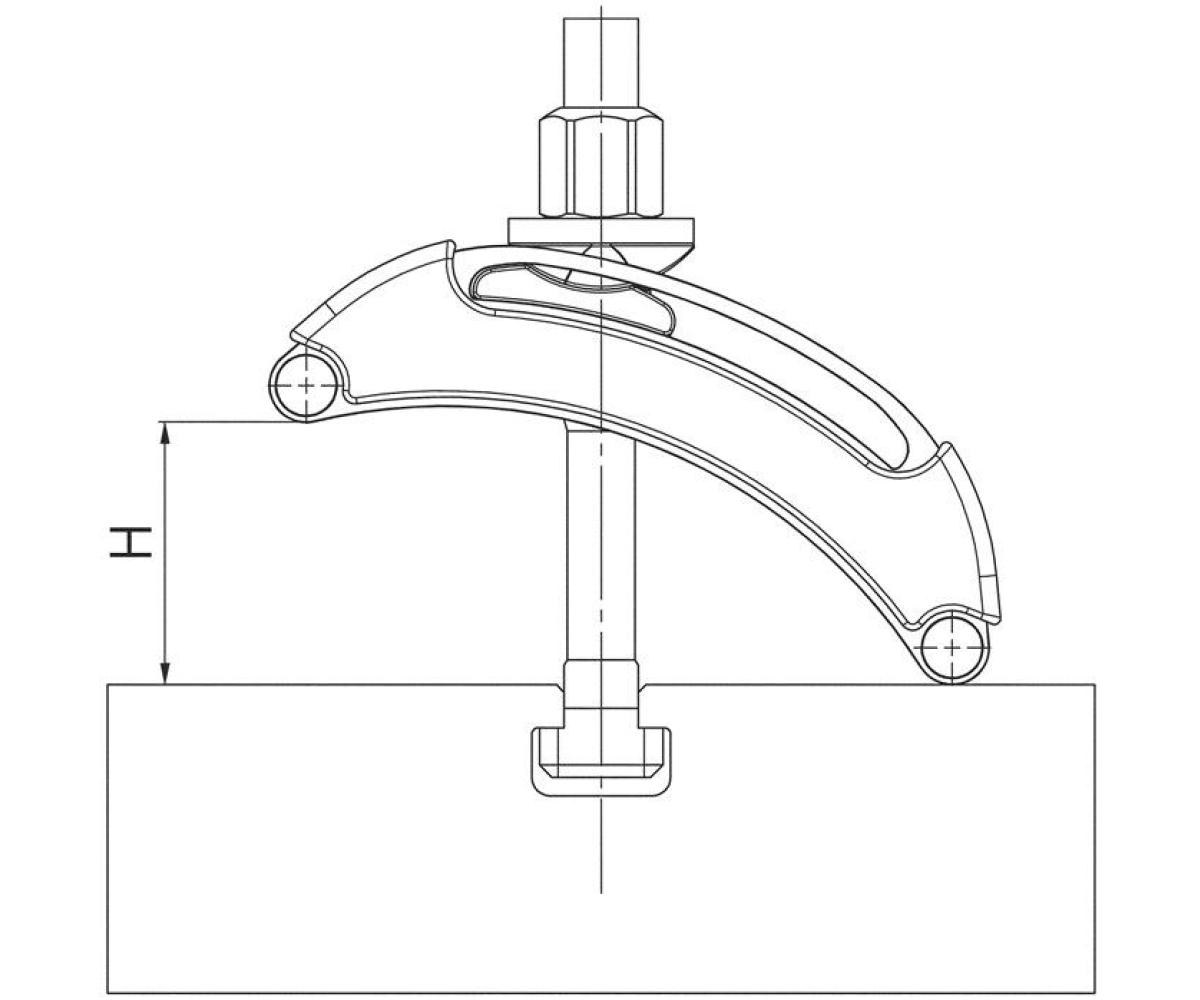 Anwendung: Das Spanneisen wird bei allen Spannaufgaben, bei denen über T-Nuten, Nuten und Gewindebohrungen gespannt wird, eingesetzt · Vorteile: Gewichtseinsparung durch die leichte Bauweise. Variable und schnelle Verstellmöglichkeit im Abstand zum Werkstück. Es sind keine weiteren Spannunterlagen zum Erreichen der benötigten Spannhöhe notwendig. Die Unterlegscheibe ist unverlierbar mit dem Spanneisen verbunden. Hinweis: Zum Spannen können wahlweise Spannschrauben DIN 787, Stiftschrauben DIN 6379 und Zylinderschrauben ISO 4762 verwendet werden.