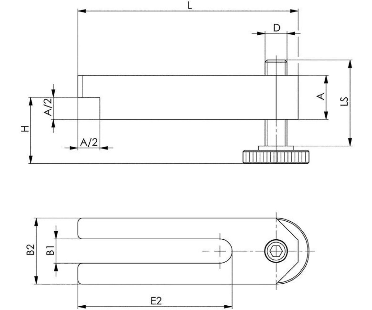 Weitere technische Eigenschaften · Breite: 50 mm · Länge: 160 mm · A: 30mm · B1: 18mm · B2: 50mm · E2: 110mm · D: M16 · Gewicht: 1880g · ähnl. DIN 6315 B B1 x L: 18 x 160mm · L: 160mm · Stärke: 30 mm · LS: 55mm · Schlitzbreite: 18 mm · H: 13 - 56mm · Spanneisen Nr.6315V · f.T-Nut 18mm L.160mm · Spannschraube ·