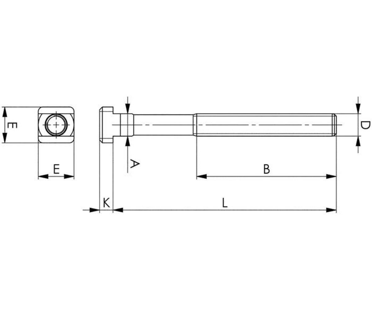 Weitere technische Eigenschaften · A: 23,7mm · D: M24 · Qualität: Güteklasse 8.8 · L: 250mm · B: 150mm · K: 16mm · E: 40mm · T-Nutenschraube DIN 787 · T-Nut 24mm M24 L.250mm · Güte 8.8 m.Mutter · DIN 787 ähnlich ·