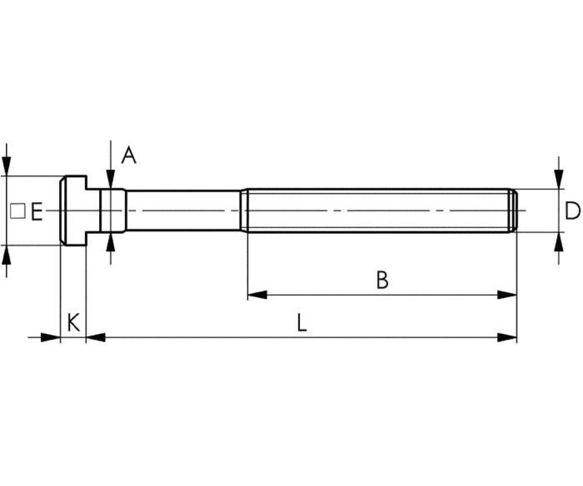 Weitere technische Eigenschaften · A: 23,7mm · D: M24 · Qualität: Güteklasse 8.8 · L: 315mm · B: 190mm · K: 16mm · E: 40mm · T-Nutenschraube (DIN 787) · T-Nut 24mm M24 L.315mm · Güte 8.8 AMF ·