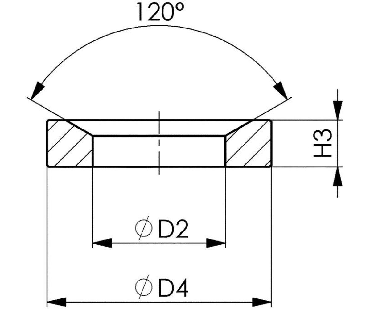 Weitere technische Eigenschaften · D4: 21mm · D2: 12mm · Kegelwinkel: 120° · Schraubenkraft max.: 26kN · H3: 4,2mm · Kegelpfanne DIN 6319D · f.Schrauben M10 · Bohrungs-D.12mm ·