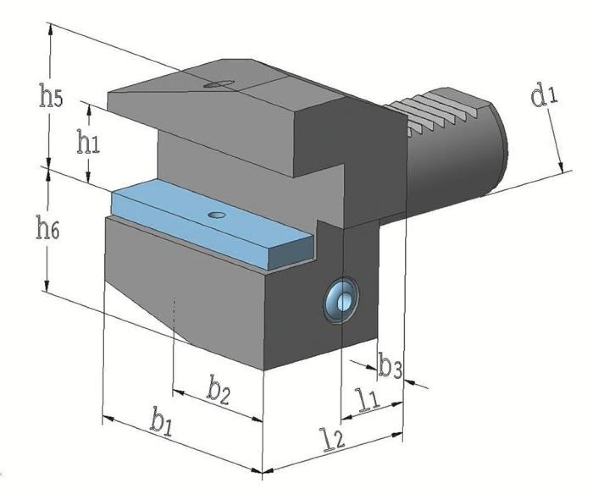 Weitere technische Eigenschaften · h6: 42,5mm · b1: 85mm · l2: 44mm · l1: 22mm · b2: 42,5mm · h1: 25mm · Form: B3 · d1: 40mm · Norm: DIN 69880 · b3: 12,5mm · h5: 48mm · Radialwerkzeughalter B3 · DIN 69880 VDI40 · re.Überkopf TECWERK ·