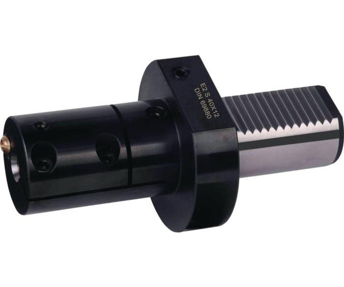 für Bohrstangen · geschlitze Ausführung · Form E2 S · reduziert bzw. verhindert Vibrationen durch Umschlingung der Bohrstange · auch geeignet für vollrunde Bohrstangen mit V-Nut · Halter sind soweit möglich im Schaft durchbohrt · gesichert gegen Herausfallen in den Revolver durch Sicherungsring · geschlitzer Bereich bis 16 mm 4 x D, 20 und 25 mm 3 x D, ab 32 mm 2,5 x D · externe und interne Kühlung möglich · Längeneinstellung bei durchbohrtem Schaft von der Schaftseite möglich