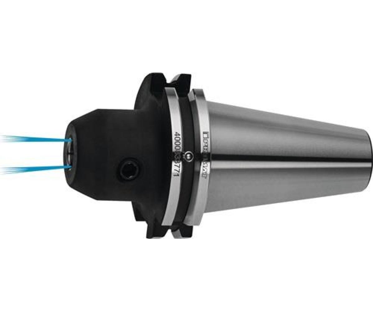 mit Steilkegel nach DIN 69871 Form AD/B · mit zentraler Kühlmittelzufuhr und wiederverschließbaren Kühlkanälen am Bund sowie seitlichen Kühlkanälen für Werkzeuge mit Zylinderschaft und seitlicher Mitnahmefläche nach DIN 1835-B · Bohrungstoleranz H4