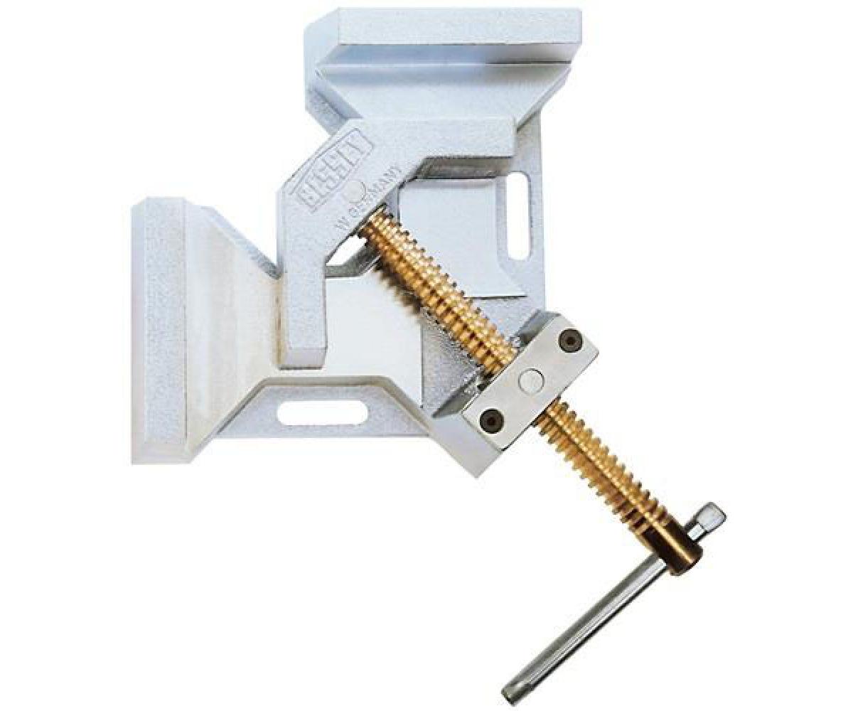 universell verwendbares Spannwerkzeug zum Fixieren rechtwinklig zueinander stehender Bauteile auch unterschiedlicher Dicke · Backen und Grundkörper aus hochwertigem Guß · Spindel verkupfert, deshalb speziell auch für Schweißarbeiten geeignet · durch die seitlichen Langlöcher leicht auf Schweißtischen und Maschinentischen zu befestigen · Winkelbereich: 5° - 180°