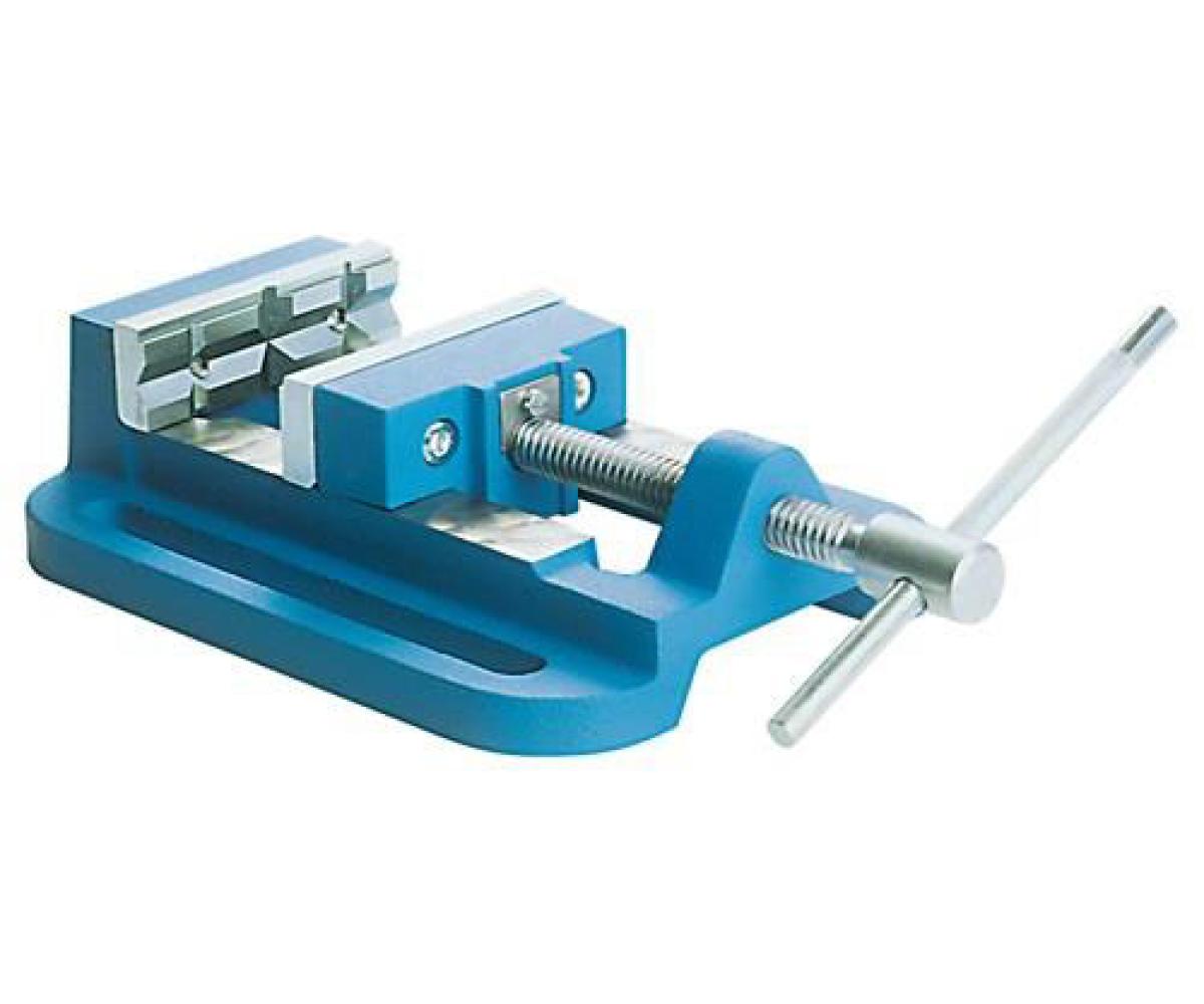äußerst robuster, schwerer Maschinenschraubstock für Produktion und Handwerk · Grundkörper aus hochfestem Temperguss · gehärtete Backen · kräftige Trapezgewindespindeln mit langem Knebel für maximale Spannkraft
