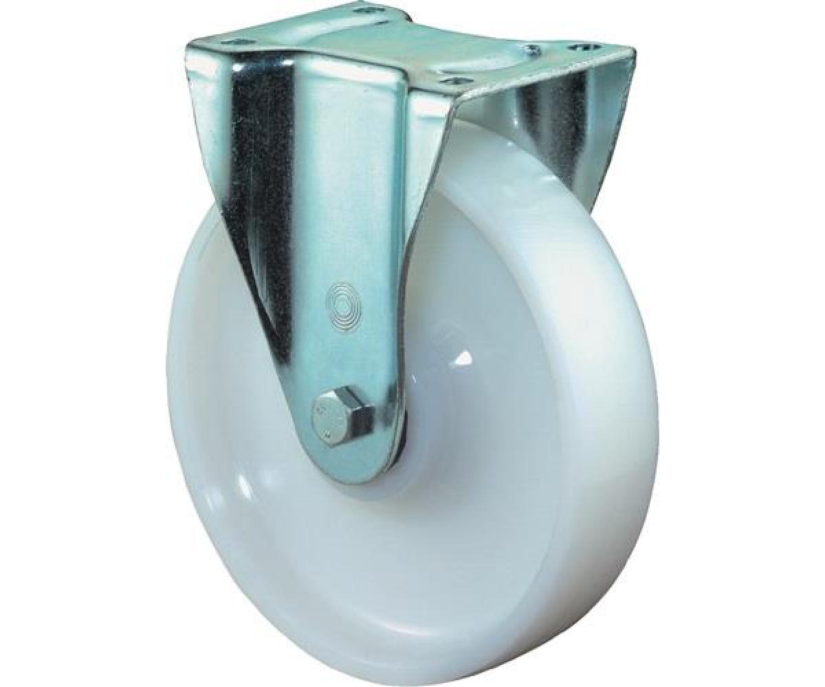 schwere Transportrolle · Gabel aus Stahlblech, verzinkt-chromatiert · Radachse verschraubt · Radkörper aus Kunststoff, Lauffläche Kunststoff · bruchsicher und sehr abriebfest · Kugellager · mit Plattenbefestigung