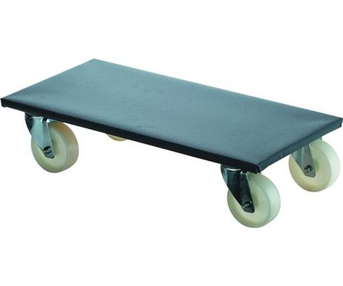 Weitere technische Eigenschaften · Oberfläche Gehäuse: verzinkt-chromatiert · Ausführung: mit Rutschschutzbelag · Plattenbreite: 600mm · Material Gehäuse: Stahlblech · Plattenlänge: 300mm · Transportroller D.100mm · 350kg L600mm B300mm · Ku.m.Rutschschutzbelag BS ·