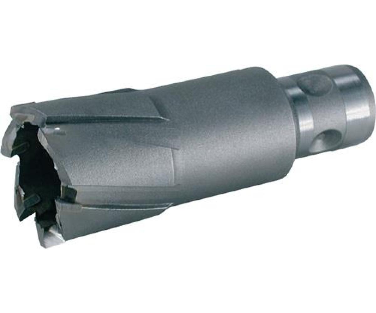 Kernbohrer mit Hartmetallschneiden. Insbesondere für Eisenbahnschienen, Hardox / Weldox 400 Stähle, Stahl, Stahlguß, hochchromlegierte Stähle wie V2A und V4A und höher legierte Stähle.