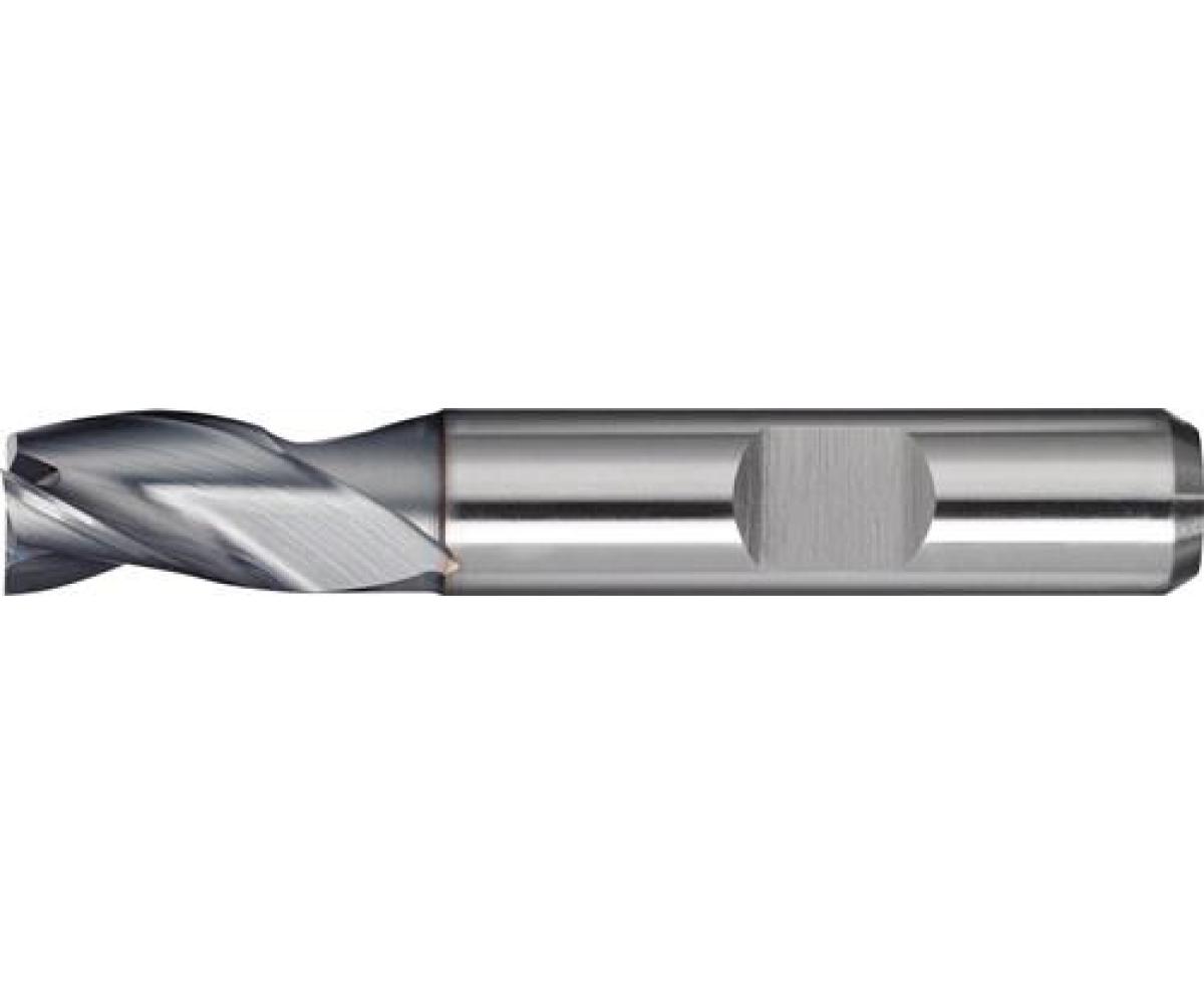 HSS-Co8 · DIN 327 · Typ N · Dreischneider · kurz · Zentrumschnitt · Zylinderschaft mit Mitnahmefläche · rechtsschneidend · zum Fräsen von Werkstoffen mit geringer und mittlerer Festigkeit bis ca. 800 N/mm² mit unbeschichtetem Werkzeug und 1000 N/mm² mit beschichtetem Werkzeug · zum Fräsen von Passfedernuten mit größerer Tiefe zum Stirn- und Umfangsfräsen