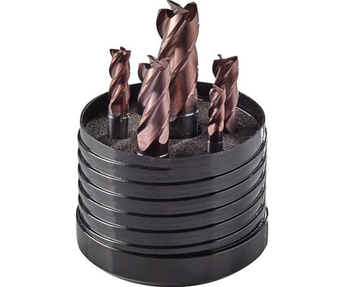 Weitere technische Eigenschaften · Inhalt: 5 teilig · Werkstoffeignung INOX: sehr gut geeignet · Werkstoffeignung Guss: sehr gut geeignet · Werkstoffeignung Stahl: sehr gut geeignet · Verpackung: Kunststoffbox · Werkstoffeignung Harte Werkstoffe: sehr gut geeignet · Werkstoffeignung Sonderlegierungen: sehr gut geeignet · Werkstoffeignung NE-Metalle: sehr gut geeignet · Schaftfräserset DIN 6527L · D.6/8/10/12/16mm Z.4 VHM · TiAlN 5tlg.Ku.-Box TECWERK · Inhalt: je 1 Stück 6,0 - 8,0 - 10,0 - 12,0 - 16,0 mm ·