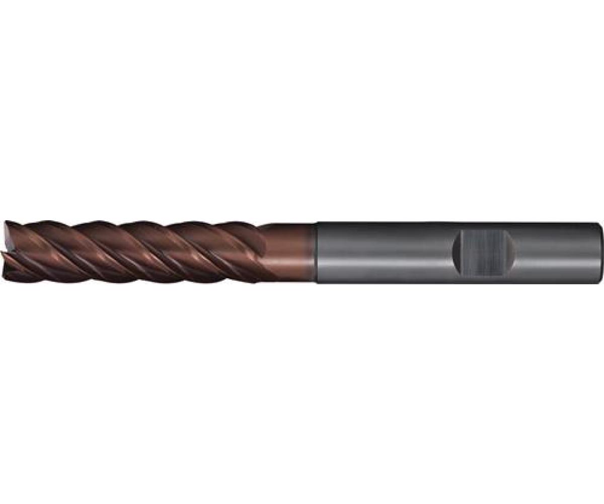 VHM · Universal-Feinstkorn · TiAlN-beschichtet · Werksnorm · Typ N · Mehrschneider · extra lang · 3xD Schneidenlänge · 45° Schutzfase · Zentrumschnitt · mit Zylinderschaft nach DIN 6535 HB · ungleiche Steigung · rechtsschneidend · Halsfreischliff · für vibrationsarme Bearbeitung, zum Schruppen und Schlichten geeignet · durch neu entwickelte Geometrie und Beschichtung universell einsetzbar zum Fräsen in Stahl, Stahlguss, Grauguss, Temperguss, Cr-Ni-Stählen, NE-Metallen, Aluminium mit Siliciumanteil und abrasiven Werkstoffen