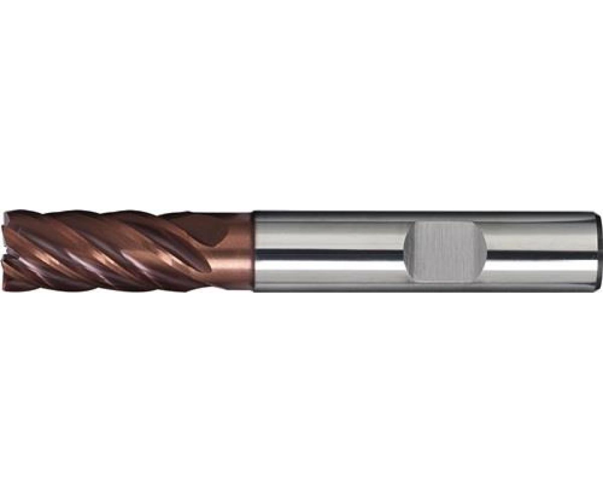 VHM · Universal-Feinstkorn · TiAlN-beschichtet · DIN 6527 L · Typ N · Mehrschneider · lang · 45° Schutzfase · mit Zylinderschaft nach DIN 6535 HB · ungleiche Steigung · rechtsschneidend · Halsfreischliff · für vibrationsarme Bearbeitung, zum Schruppen und Schlichten geeignet · durch neu entwickelte Geometrie und Beschichtung universell einsetzbar zum Fräsen in Stahl, Stahlguss, Grauguss, Temperguss, Cr-Ni-Stählen, NE-Metallen, Aluminium mit Siliciumanteil und abrasiven Werkstoffen
