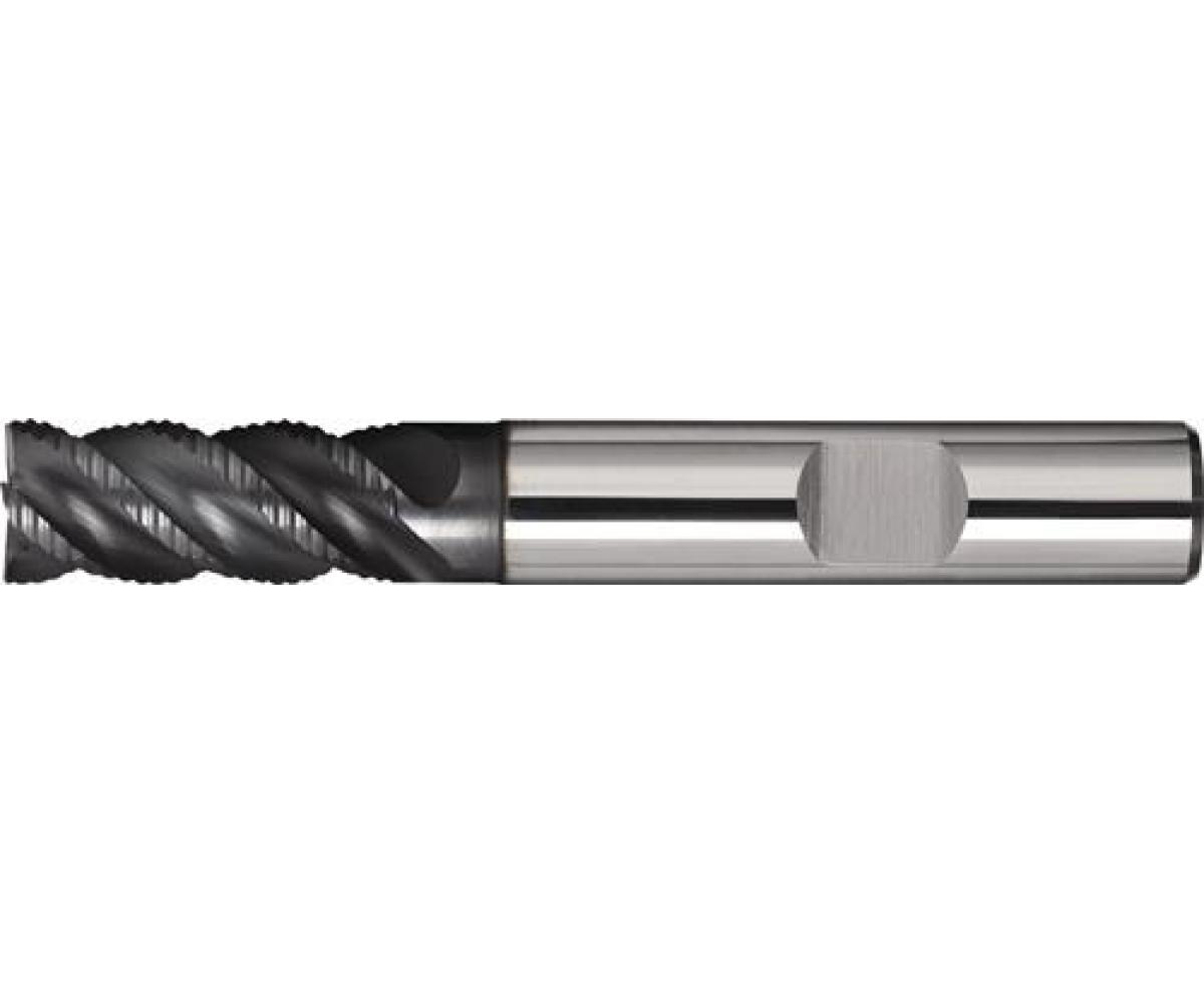 VHM · Universal-Feinstkorn · TiAlN-beschichtet · DIN 6527 L · Typ NR · Vierschneider · lang · 45 ° Schutzfase · mit Zylinderschaft nach DIN 6535 HB · 45 ° Drallwinkel · rechtsschneidend · Halsfreischliff · positiver Spanwinkel für höhere Einsatzflexibilität · Schneidenausführung mit speziellem Schruppprofil · ermöglicht eine schwingungsarme Bearbeitung