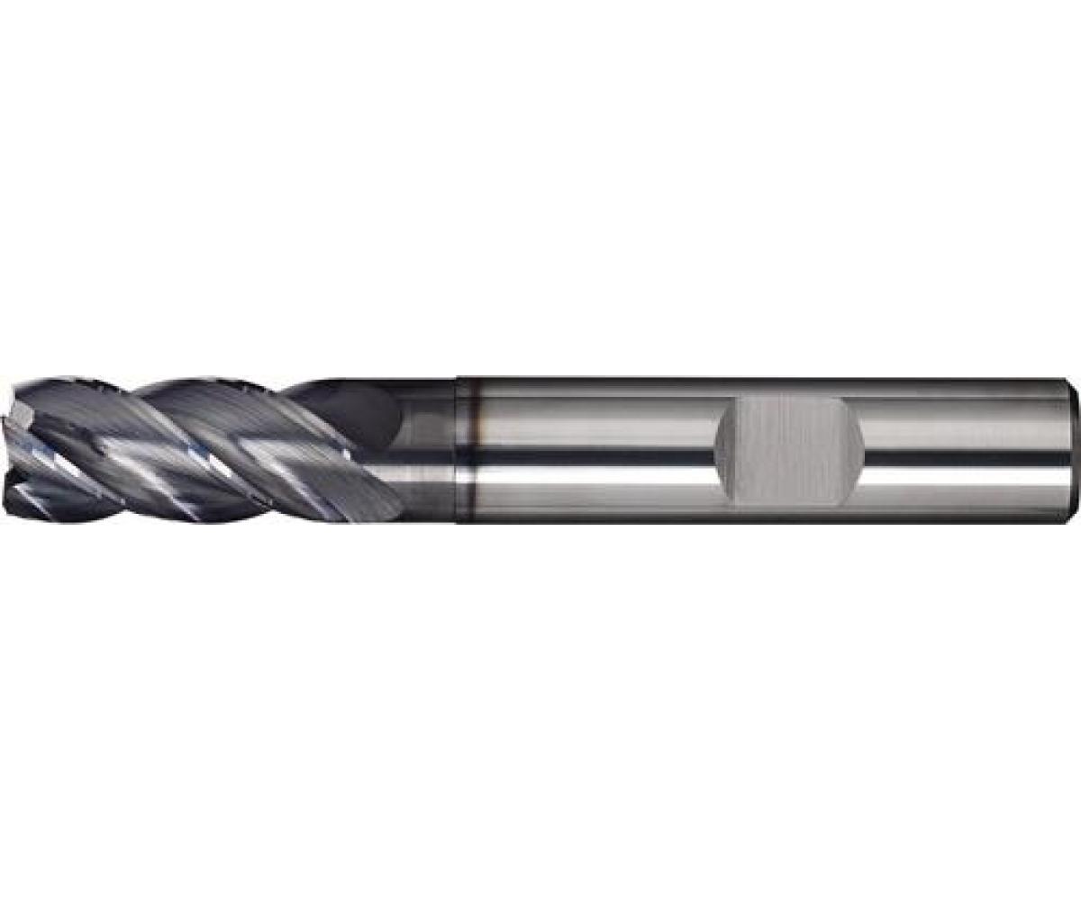 VHM · Universal-Feinstkorn · TiAlN-beschichtet · DIN 6527 L (ähnlich) · Typ INOX/HPC · Vierschneider · lang · 45° Schutzfase · Zentrumschnitt · mit Zylinderschaft nach DIN 6535 HB · ungleiche Steigung · ungleiche Teilung · rechtsschneidend · Halsfreischliff ab Nenn-Ø 6 mm