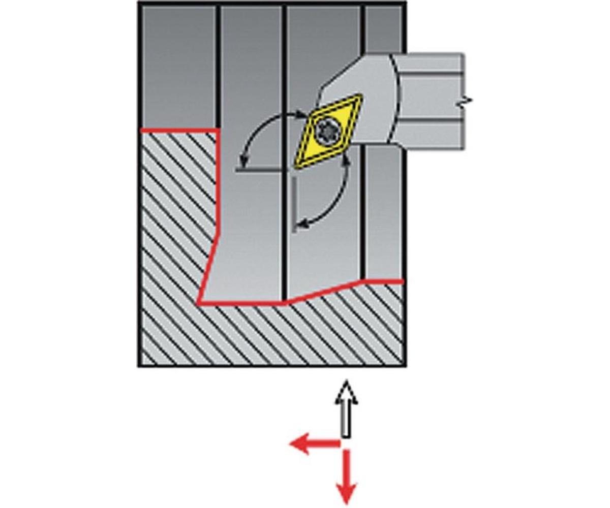 Weitere technische Eigenschaften · Oberfläche: vernickelt · Ersatzteile: SC 06 · Ø d g7: 16mm · Wendeplatte: DC.. 0702.. · f: 11mm · Drehrichtung: rechts · l1: 150mm · Kühlung: mit Innenkühlung · h: 15mm · Ø D min: 22mm · Bohrstange A16M-SDQCR 07 · re. vern. m. IK TECWERK ·