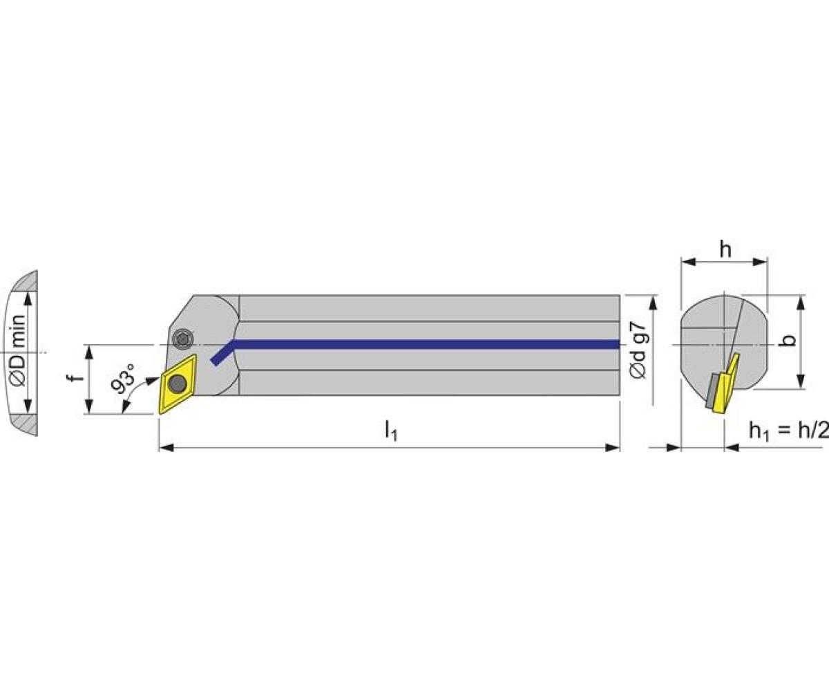 Weitere technische Eigenschaften · Oberfläche: vernickelt · Ersatzteile: PD 12 · Ø d g7: 40mm · Wendeplatte: DN..1506.. · b: 38mm · f: 27mm · Drehrichtung: rechts · l1: 300mm · Kühlung: mit Innenkühlung · h: 38mm · Ø D min: 50mm · Bohrstange A40T-PDUNR 15 · re. vern. m. IK TECWERK ·