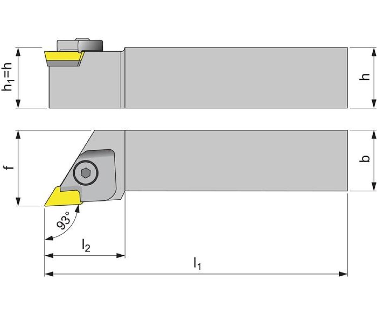 Weitere technische Eigenschaften · Oberfläche: vernickelt · Ersatzteile: L · Wendeplatte: KNUX 1604.. · Anwendungsbereich: Außendrehen · b: 25mm · f: 32mm · h=h1: 25mm · l1: 150mm · l2 max: 34mm · Klemmdrehhalter CKJNL · 2525 M16 li. vern. · Außendrehen TECWERK ·