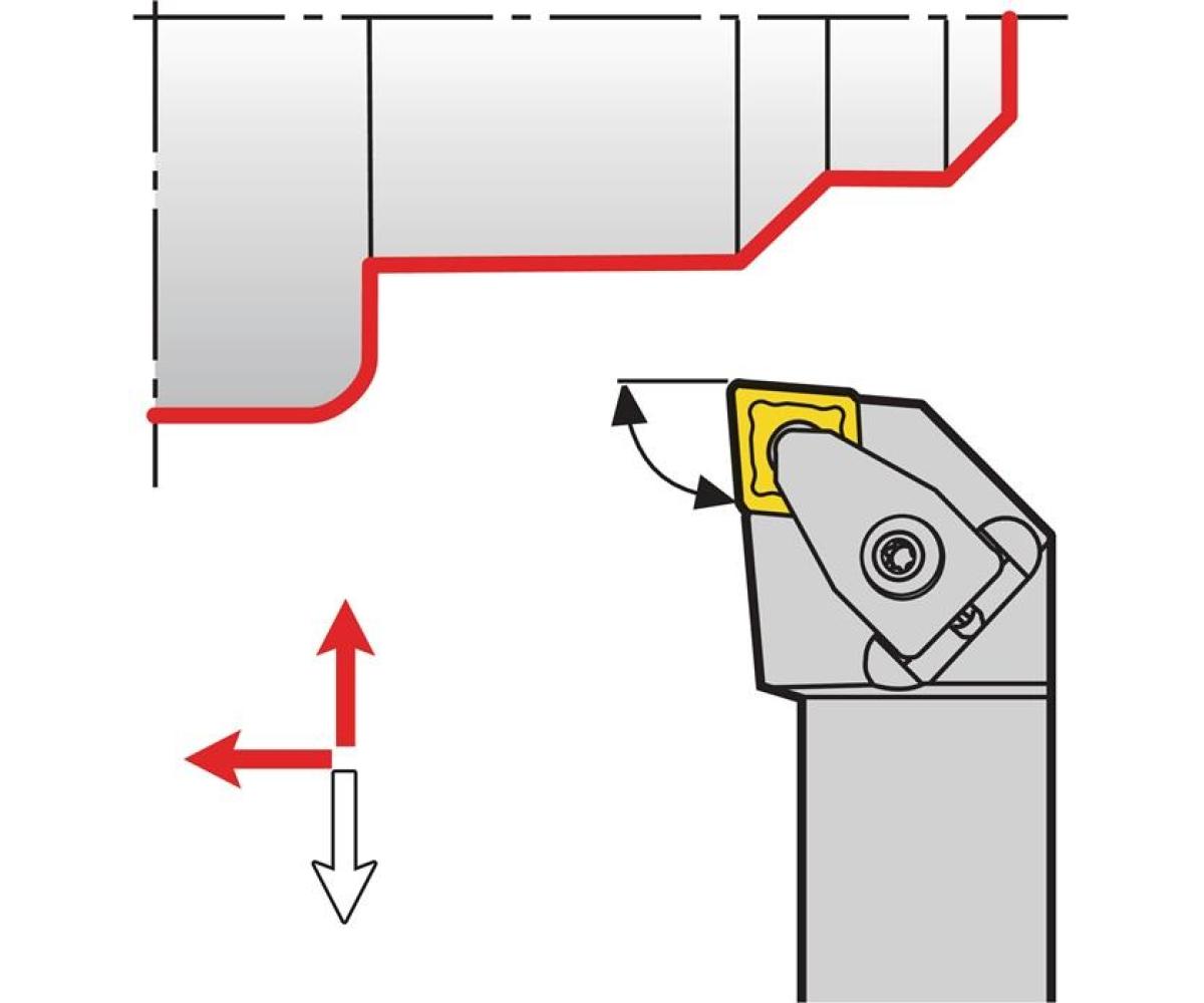 Weitere technische Eigenschaften · Oberfläche: vernickelt · Ersatzteile: DC 12 · Wendeplatte: CN..1204.. · Anwendungsbereich: Außendrehen · b: 25mm · f: 32mm · h=h1: 25mm · l1: 150mm · l2 max: 30mm · Klemmdrehhalter DCLNL · 2525 M12 li. vern. · Außendrehen TECWERK ·