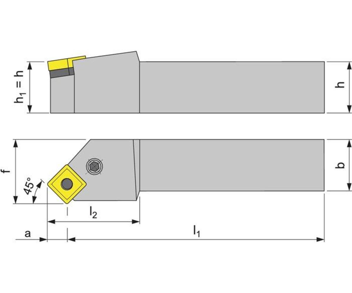 Weitere technische Eigenschaften · Oberfläche: vernickelt · Ersatzteile: PS 12 · Wendeplatte: SN.. 1204.. · a: 8,3mm · Anwendungsbereich: Außendrehen · b: 20mm · f: 25mm · h=h1: 20mm · l1: 125mm · l2 max: 36mm · Klemmdrehhalter PSSNL · 2020 K12 li. vern. · Außendrehen TECWERK ·