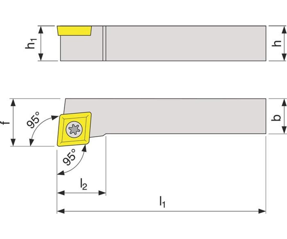 Weitere technische Eigenschaften · Oberfläche: vernickelt · Ersatzteile: SC 12 · Wendeplatte: CC.. 1204.. · Anwendungsbereich: Außendrehen · b: 25mm · f: 32mm · h=h1: 25mm · l1: 150mm · l2 max: 29mm · Klemmdrehhalter SCLCL · 2525 M12 li.vern.Außen · TECWERK ·
