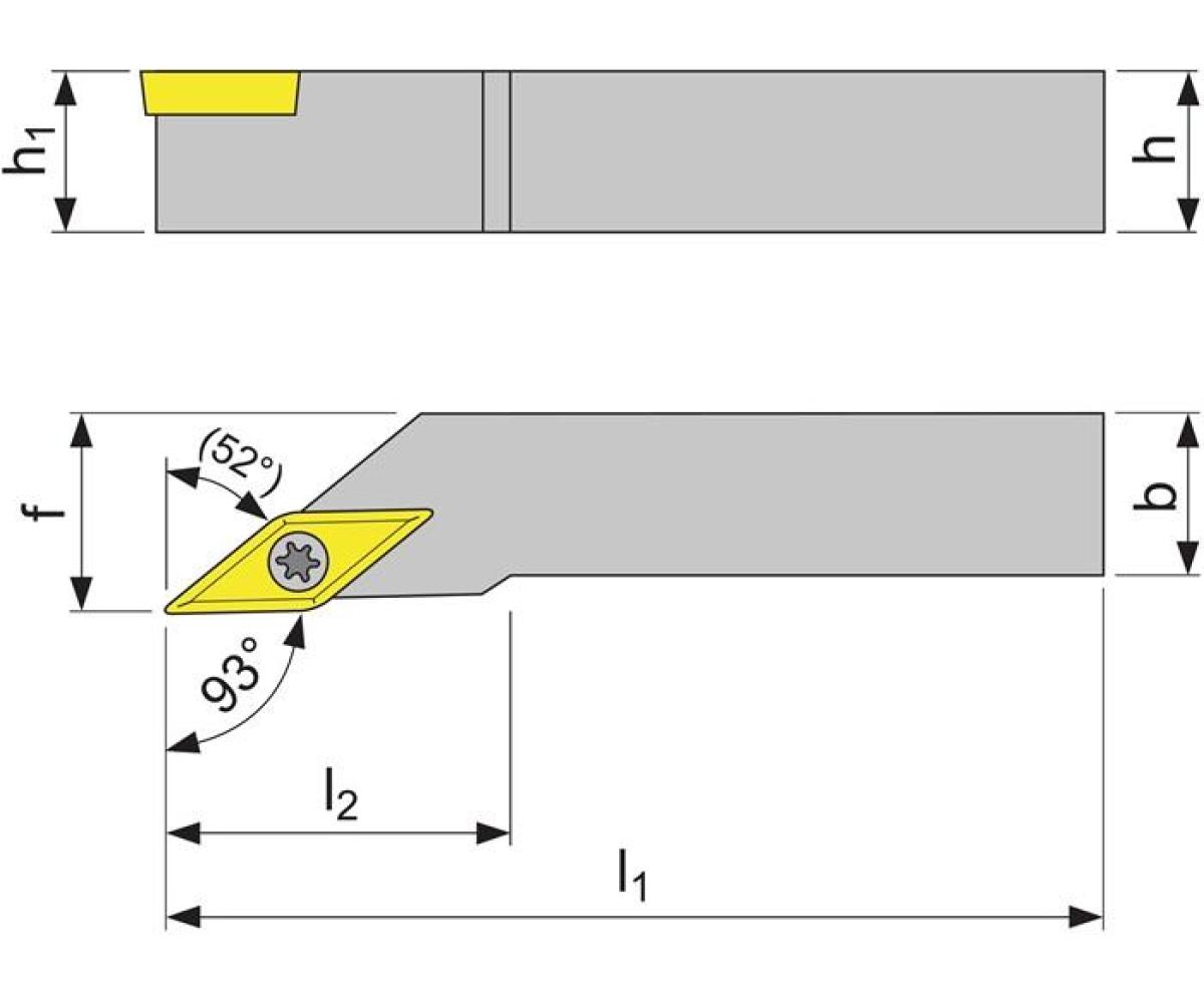Weitere technische Eigenschaften · Oberfläche: vernickelt · Ersatzteile: SV 16 · Wendeplatte: VC.. 1604.. · Anwendungsbereich: Außendrehen · b: 20mm · f: 25mm · h=h1: 20mm · l1: 125mm · l2 max: 28mm · Klemmdrehhalter SVJCL · 2020 K16 li. vern. · Außendrehen TECWERK ·