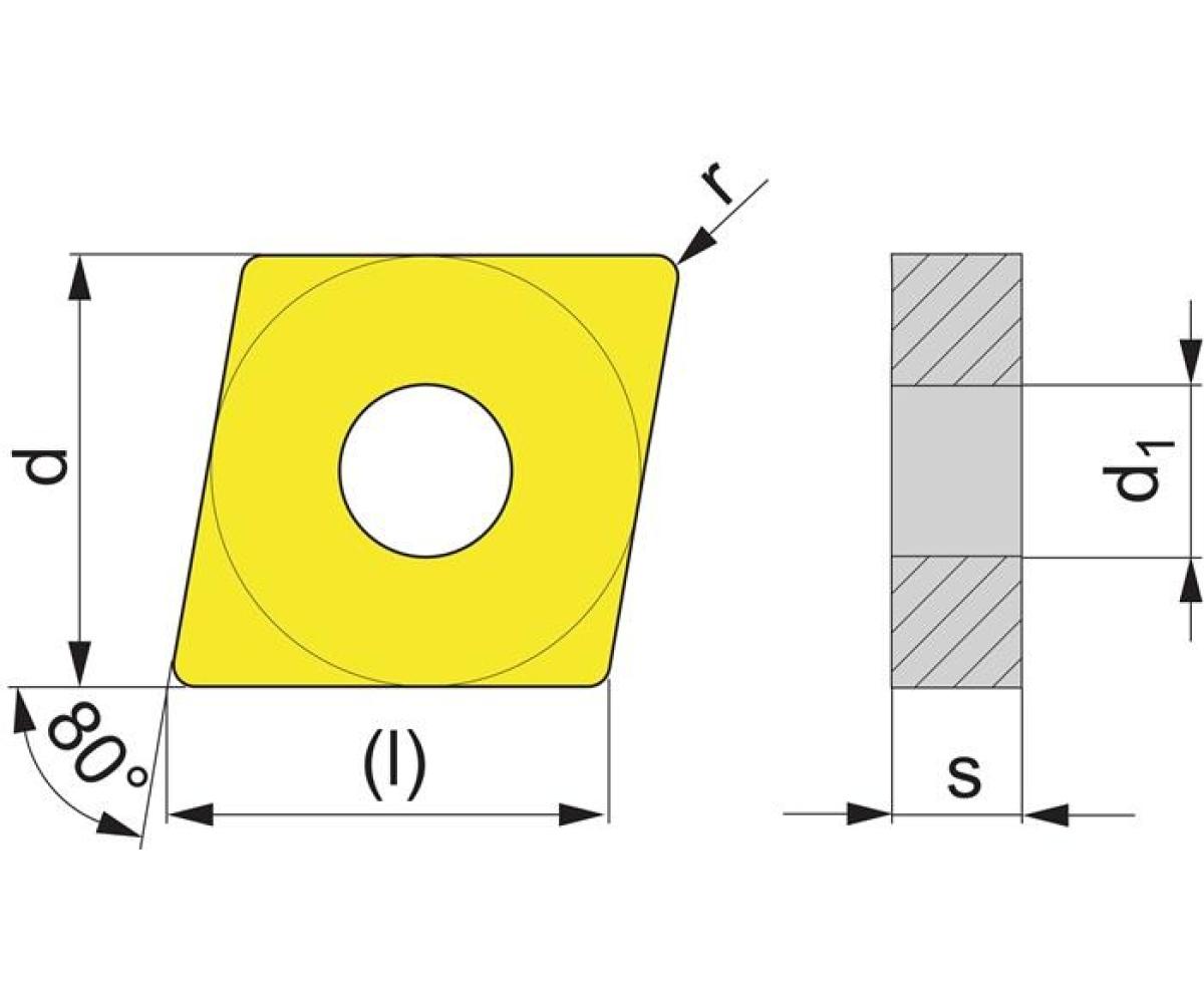 Weitere technische Eigenschaften · d: 12,7mm · Anwendungsbereich: Bearbeitung Schlicht · r: 0,4mm · d1: 5,16mm · s: 4,76mm · l: 12,9mm · Vorschub max.: 0,3 mm/U in Stahl / - mm/U in Rostfrei / 0,3 mm/U in Guss / - mm/U in NE-Metalle / - mm/U in Superlegierungen / - mm/U in gehärtete Stähle · Vc max.: 325 m/min in Stahl / - m/min in Rostfrei / 305 m/min in Guss / - m/min in NE-Metalle / - m/min in Superlegierungen / - m/min in gehärtete Stähle · Vc min.: 255 m/min in Stahl / - m/min in Rostfrei / 240 m/min in Guss / - m/min in NE-Metalle / - m/min in Superlegierungen / - m/min in gehärtete Stähle · Schnitttiefe min.: 0,5 mm in Stahl / - mm in Rostfrei / 0,5 mm in Guss / - mm in NE-Metalle / - mm in Superlegierungen / - mm in gehärtete Stähle · Schnitttiefe max.: 3 mm in Stahl / - mm in Rostfrei / 3 mm in Guss / - mm in NE-Metalle / - mm in Superlegierungen / - mm in gehärtete Stähle · Vorschub min.: 0,15 mm/U in Stahl / - mm/U in Rostfrei / 0,15 mm/U in Guss / - mm/U in NE-Metalle / - mm/U in Superlegierungen / - mm/U in gehärtete Stähle · Wendeschneidplatte CNMG · 120404-F PMK10 · Bearb.Schlicht TECWERK ·
