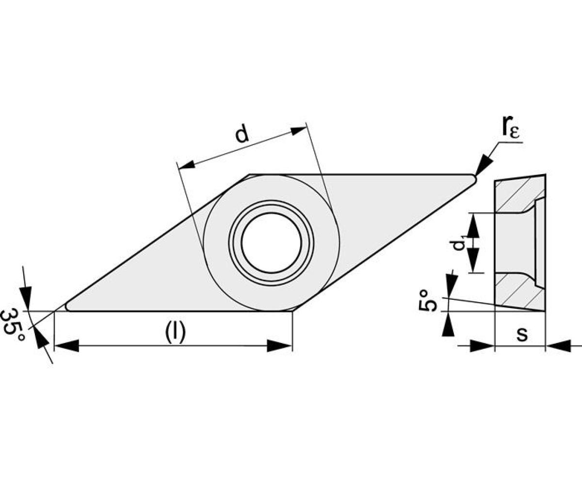 Weitere technische Eigenschaften · d: 9,525mm · Anwendungsbereich: Bearbeitung mittel · r: 0,4mm · d1: 4,4mm · s: 4,76mm · l: 16,6mm · Vorschub max.: 0,2 mm/U in Stahl / - mm/U in Rostfrei / 0,2 mm/U in Guss / - mm/U in NE-Metalle / - mm/U in Superlegierungen / - mm/U in gehärtete Stähle · Vc max.: 190 m/min in Stahl / - m/min in Rostfrei / 180 m/min in Guss / - m/min in NE-Metalle / - m/min in Superlegierungen / - m/min in gehärtete Stähle · Vc min.: 155 m/min in Stahl / - m/min in Rostfrei / 145 m/min in Guss / - m/min in NE-Metalle / - m/min in Superlegierungen / - m/min in gehärtete Stähle · Schnitttiefe min.: 0,4 mm in Stahl / - mm in Rostfrei / 0,4 mm in Guss / - mm in NE-Metalle / - mm in Superlegierungen / - mm in gehärtete Stähle · Schnitttiefe max.: 2 mm in Stahl / - mm in Rostfrei / 2 mm in Guss / - mm in NE-Metalle / - mm in Superlegierungen / - mm in gehärtete Stähle · Vorschub min.: 0,15 mm/U in Stahl / - mm/U in Rostfrei / 0,15 mm/U in Guss / - mm/U in NE-Metalle / - mm/U in Superlegierungen / - mm/U in gehärtete Stähle · Wendeschneidplatte VBMT · 160404-M PMK10 · Bearb.mittel TECWERK ·